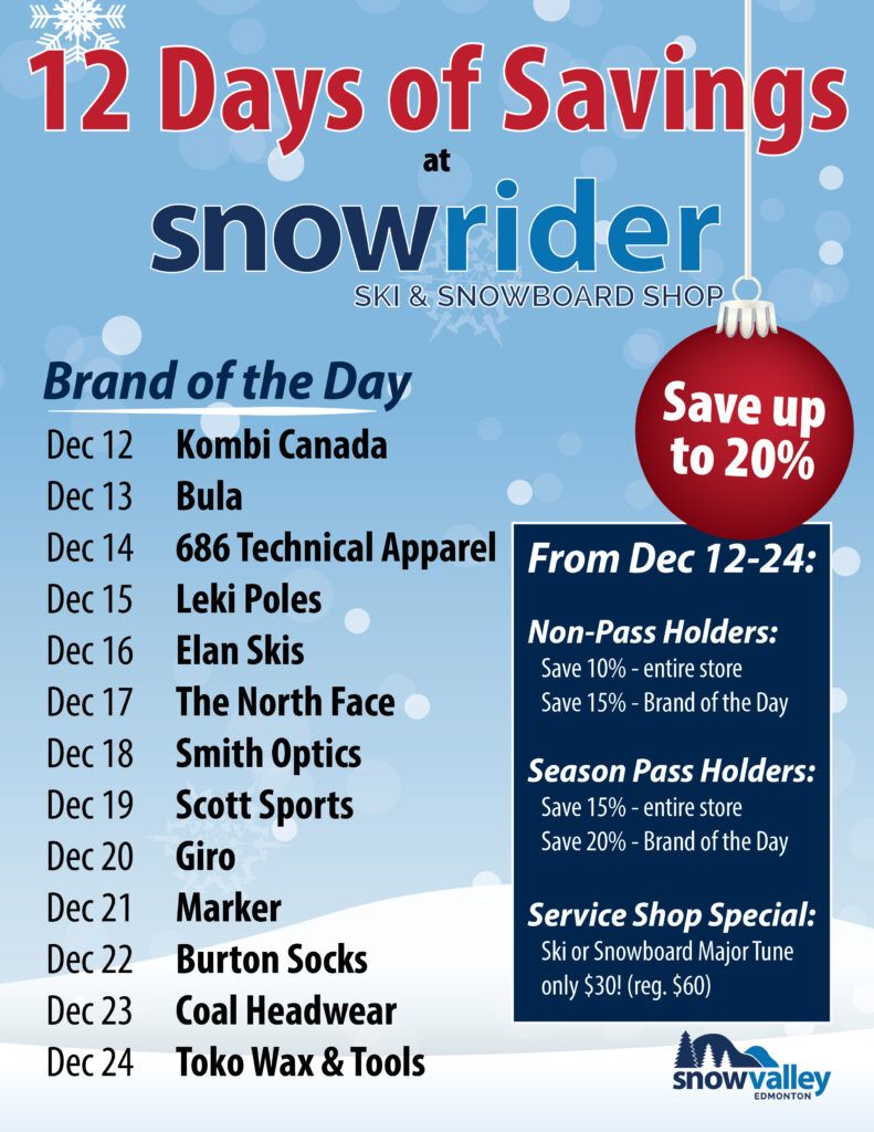 Are you looking for some last minute holiday gifts? Or maybe you are wanting to treat yourself this season! If you love being outdoors as much as we do, then Snow Rider has the goods to keep you and your family warm and safe this season. From December 12 to 24, save BIG on all products in the store.